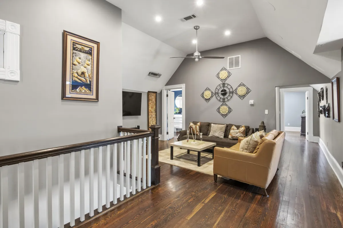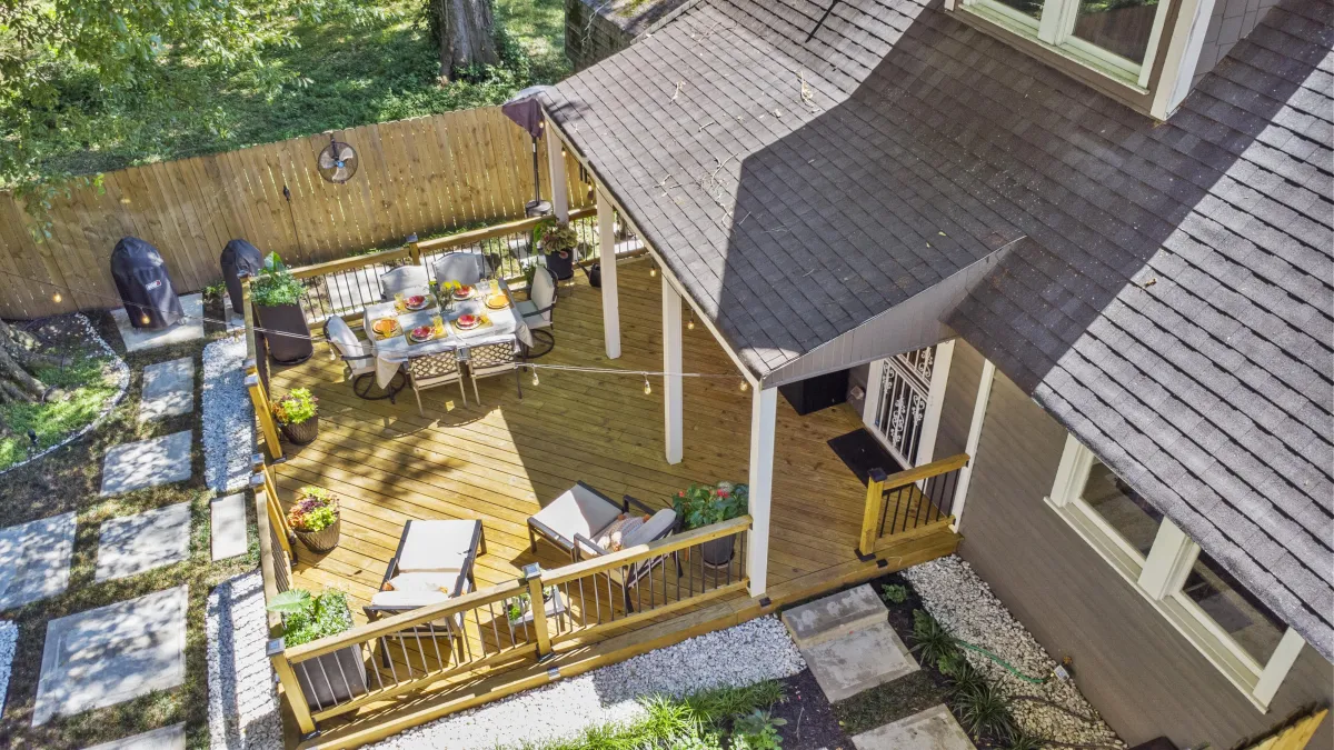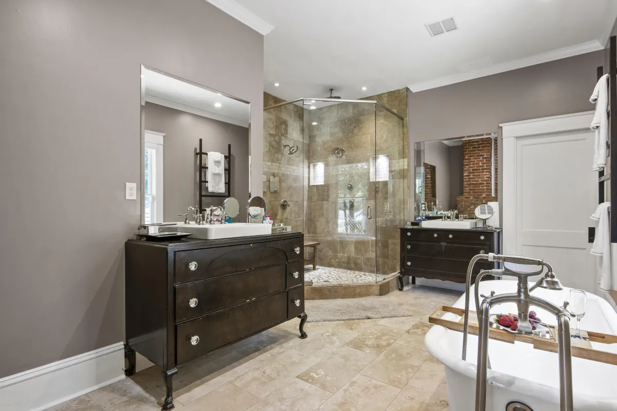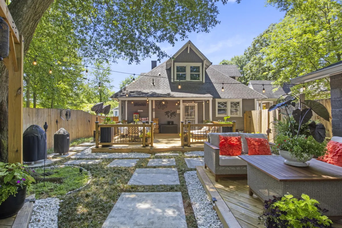 Experience the charm of our home's original hardwood floors (primary bedroom excluded) and blend of timeless and new windows. The homeowner's craft shines in the bespoke bathroom vanities--crafted from vintage dressers and paired with Kohler sinks--except for the upstairs guest bath. Luxuriate in an antique clawfoot tub, complete with professionally refinished feet by Dallas Plating, Dallas, GA. Revel in spacious showers, featuring a 5' x 6' dimension and towering 7.5-foot-tall glass panels. The homeowner-designed backyard is a DIY wonder, featuring decks and landscaping crafted by their hands. With a main deck and three additional seating areas, it's an inviting year-round retreat. Beat the heat with four heavy-duty fans, or stay cozy with two propane heaters in cooler seasons. Enjoy leisurely days on a custom-built bed swing by Atlanta Bed Swings, under the canopy of a magnificent shade tree. The mantle in the primary bedroom, a unique garage sale find, adds a touch of history.sale.